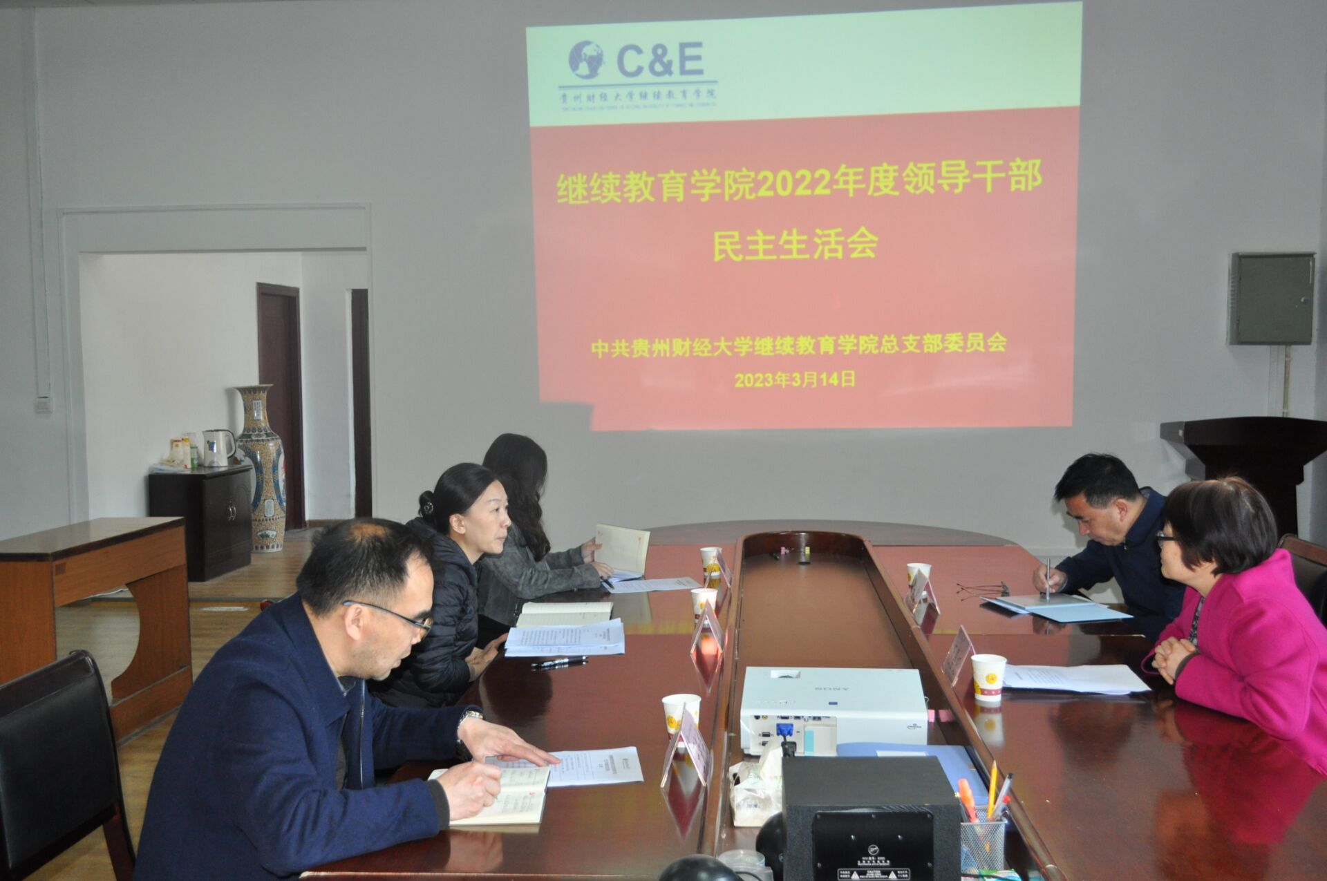 本网讯:(继续教育公司 屠玉帅 报道)3月14日下午,继续教育公司2022年度党员领导干部民主生活会在二楼会议室召开。公司党委副书记朱克乾出席会议,第十督导组组长范嘉虹到会指导,公司党总支书记赵焘参加会议,公司科室负责人代表秦黔、王新华列席。会议由公司党总支书记赵焘主持。